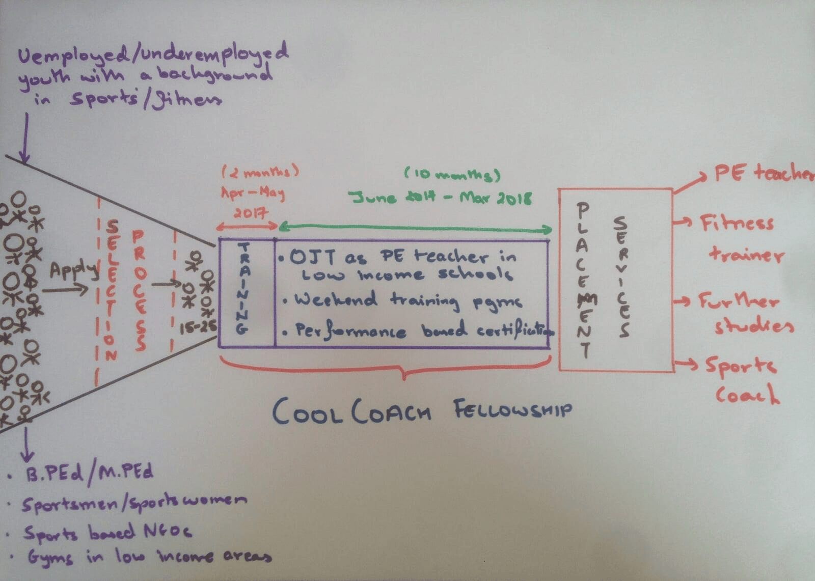 In the initial days, the Fellowship Program was still very much an idea — a figment of my imagination — and I was open to every suggestion. Based on my understanding of the Teach for America/India Fellowships (which are both two years long), my conversations with sportspersons from low-income families, and my initial research on expectations of the growing fitness industry in India, I was proposing that the CoolCoach Fellowship should be a year long. In my estimation, one year was a long enough time to upskill youth not just to get their first job in fitness, but to equip them to build a lasting career.**